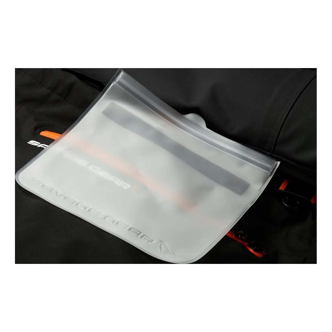- Waterproof clear flip-out internal pocket